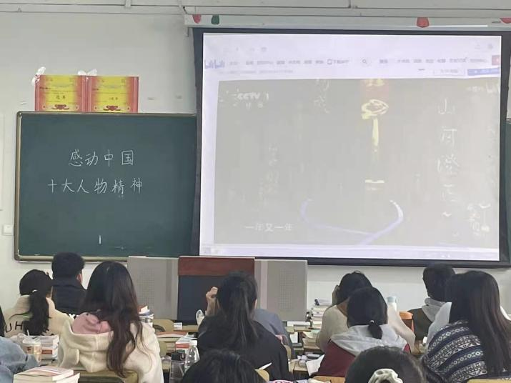 此次活动面向全系学生,由系学生会组织开展,在每个班级播放《2021感动中国十大人物》。视频开始时,一幅厚重长卷被徐徐展开,红底洒在金纸上,启功先生亲题的“感动中国”四个字缓缓出现。紧接着,一个个闪光的名字,一张张感人的照片,一幕幕想、熟悉的画面,书页犹如片片“龙鳞”,记录了《感动中国》创办以来留下的感动瞬间。