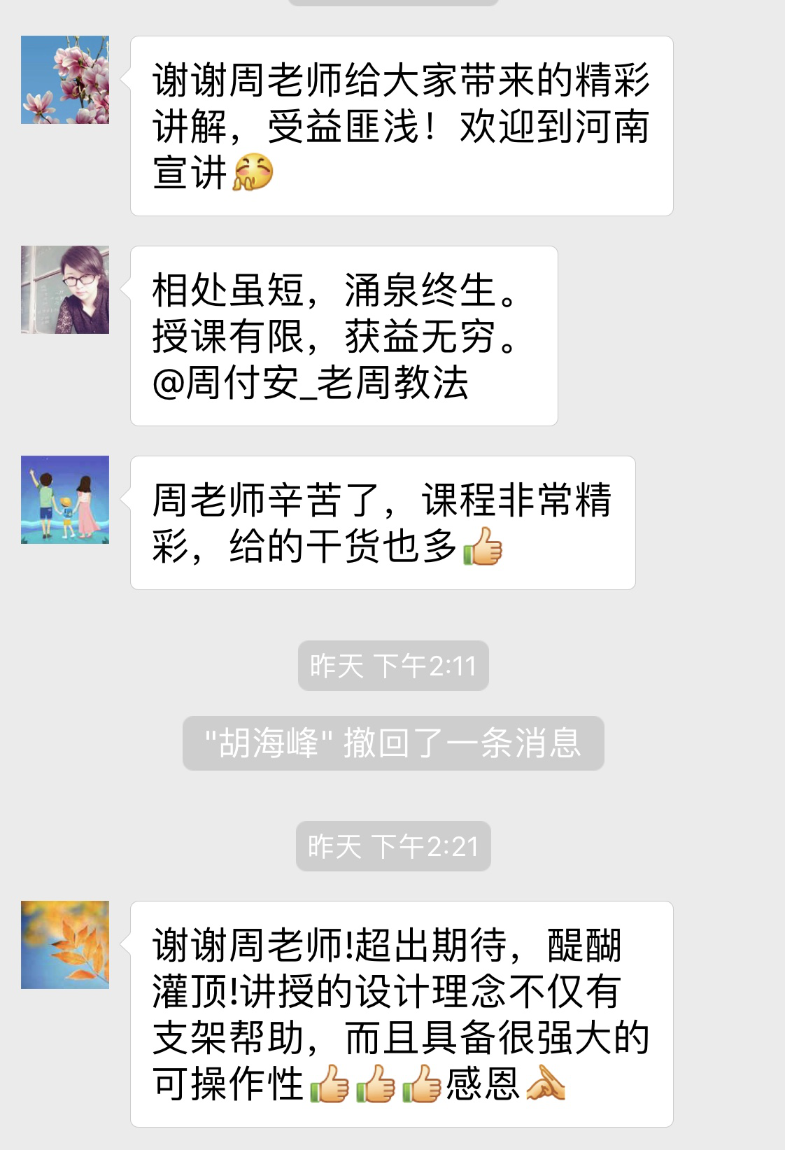 本次研修班由近年来活跃在教育培训界的周付安老师担当导师,全程采取工作坊的形式进行。周老师是近年来知名的教学设计专家,他通过深入分析国内教师课堂教学中的痛点和难点,开发的智能云支持下的教学优化设计课程颇受欢迎,被誉为“能够打通教学设计任督二脉”的优质课程,为很多课程教学尤其是实践类的学科教学带来了启示。