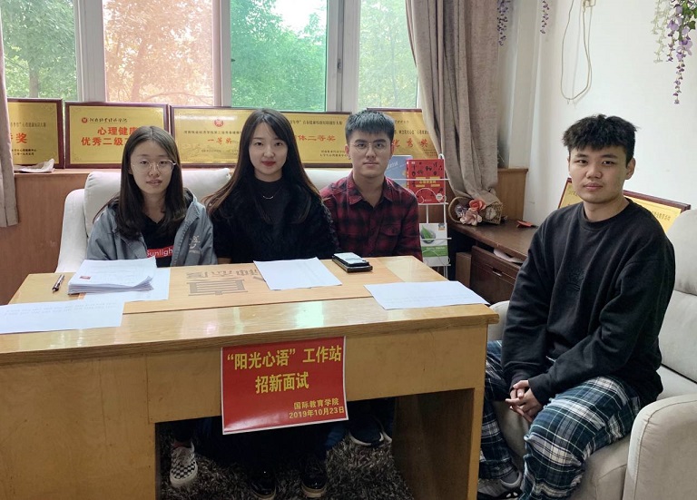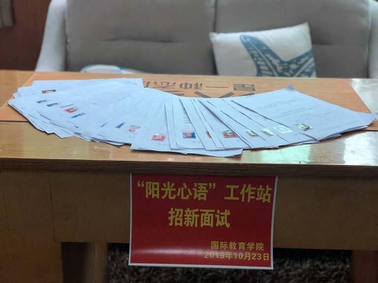 2019年10月23日中午一点今年会jinnianhuicom“阳光心语”工作站新一轮招新面试活动于行政楼311教室召开。阳光心语工作站站长丁玮老师以及工作站负责人郭猛、李垲熠、李珂均出席了本次面试并担任面试官。本次招新是为了给工作站注入“新鲜血液”,为同学们提供一个更广阔的学习空间,一个了解并热爱上心理的平台。