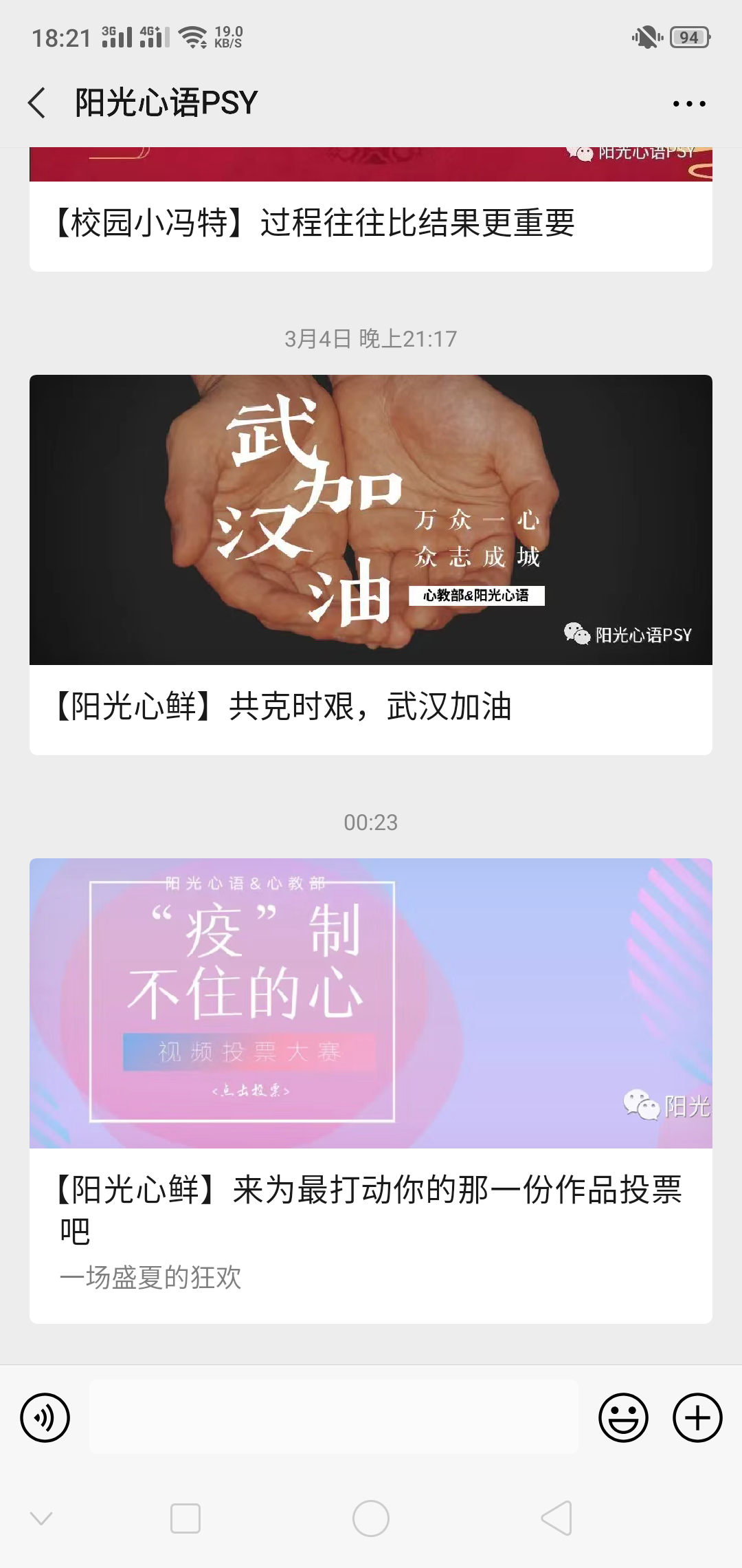 参赛选手们自行拍摄一段表达疫情过后生命力积极向上,正能量的一段表演,尽情展现自己的创造力。将心理健康教育与中华传统文化结合、与文学戏剧结合、与音乐舞蹈结合、与运动劳动结合等皆可。内容积极向上,最好贴近大学生活。疫情期间,虽然同学们宅家学习,但是热情不减,积极参与学院活动。大家积极投稿,展示自己在家期间的生活,就如活动标题一样,充分体现自己“疫”制不住的心。作品征集结束后,通过今年会官网公众号和“阳光心语”公众号进行公开投票,选出同学们心中的优秀作品。