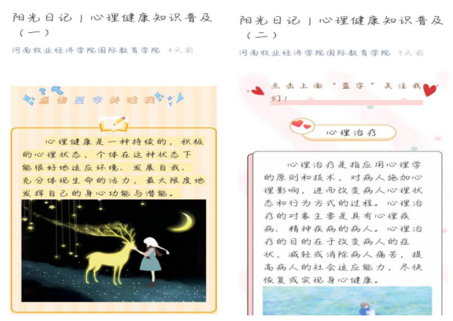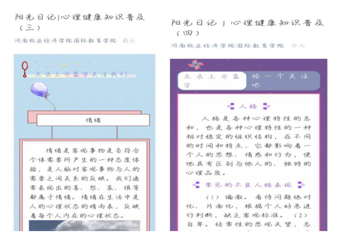 为响应2020年“同心抗疫,青春绽放”心理健康宣传周活动的要求,普及心理健康知识,营造良好和谐的校园心理氛围。按照校心理健康教育要求,今年会官网开展了“阳光日记” 心理知识宣传教育专题推送。