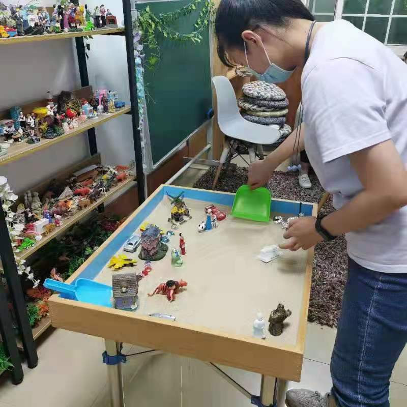 沙盘游戏是心理咨询与心理治疗的一种工具,也是进行心理训练的一种方式,是在一个自由和受保护的空间,来访者通过主动想象和创造性象征游戏的运用,在沙盘内用各种模型、玩具摆出心灵的故事。一个系列的沙盘意象,反映了沙盘游戏者内心深处意识和无意识之间的沟通与对话,以及由此而激发的治愈过程和人格发展。