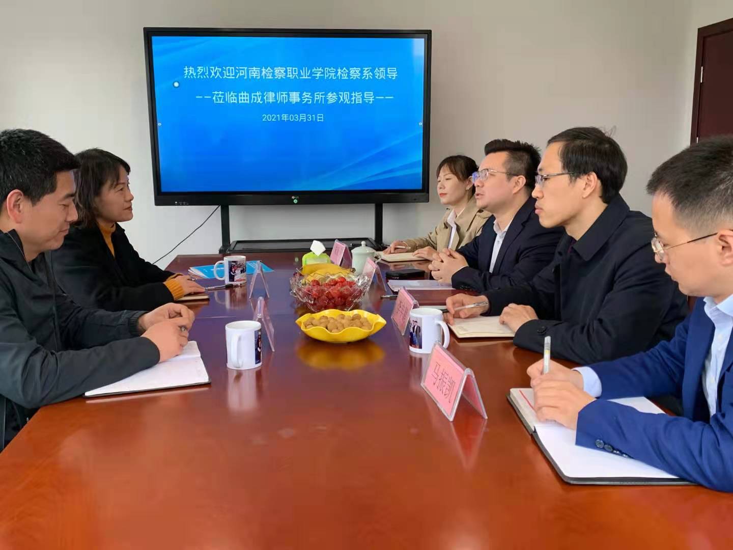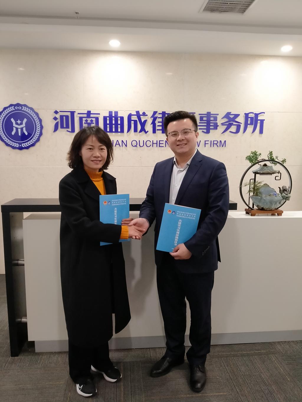 2021年3月31日上午,受学院领导指派,检察系副主任郭月霞、教学秘书武凯一行,前往河南曲成律师事务所,与该所主任律师上官绪波友好协商,就共建304永利登录入口实习实训基地一事达成一致,并举行了签约仪式。该所合伙人马振凯、李申鹏,法律援助部负责人朱亚萍等参加了座谈。