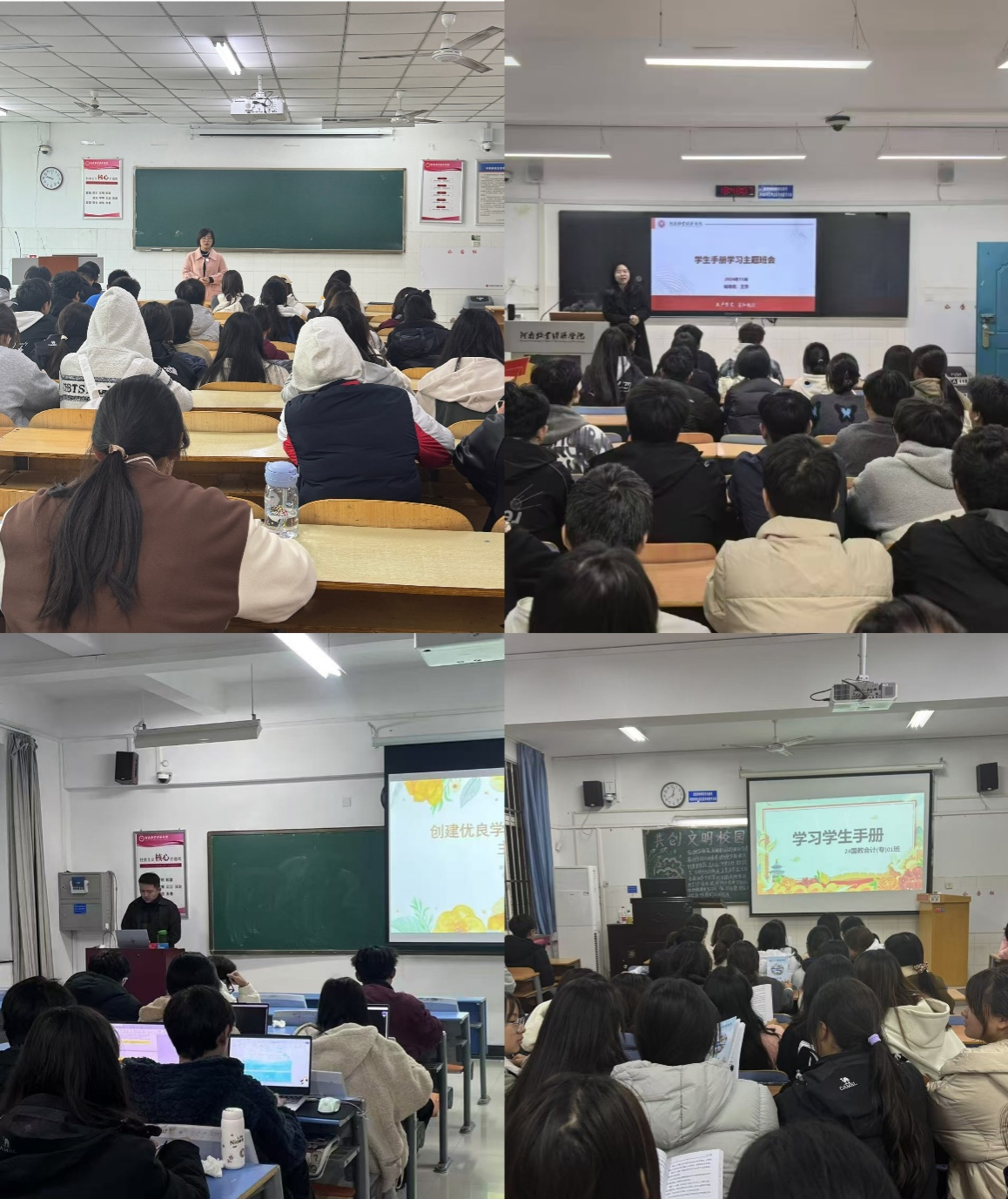 《学生手册》学习活动使2024级新生以最快的时间高效了解了今年会官网的各项规章制度,同时督促着他们遵守好校规校纪,提升个人素质,为学院良好学风的形成打下了坚实的基础。