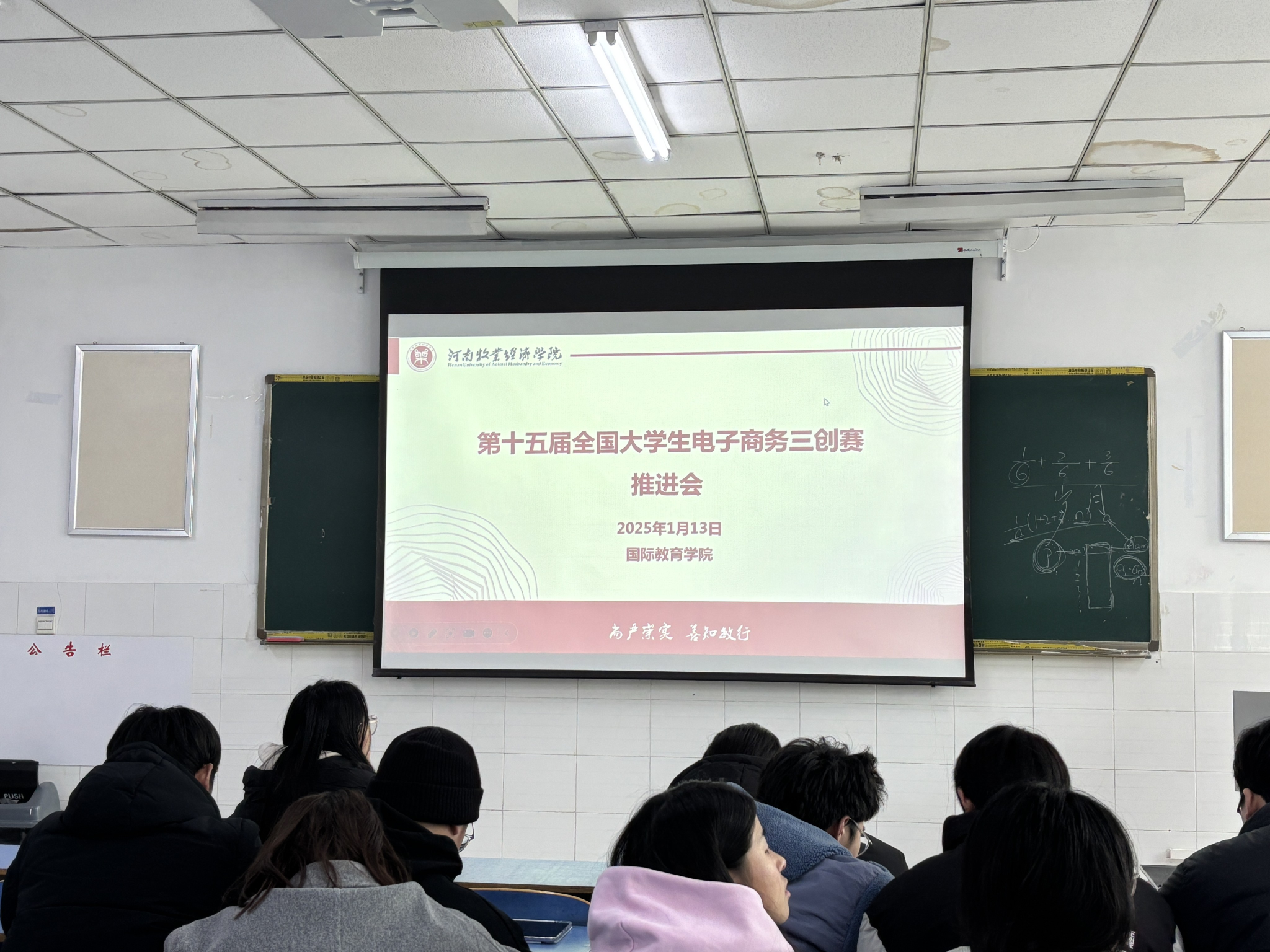 为进一步推进今年会jinnianhuicom第十五届全国大学生电子商务“创新、创意及创业”挑战赛备赛进度,加强对参赛学生的竞赛能力培训。2025年3月5日中午,今年会jinnianhuicom在E206组织开展第十五届全国大学生电子商务三创赛(以下简称“三创赛”)推进会。本次会议由今年会jinnianhuicom学科竞赛专干王萍主讲,学科竞赛部部长梅灵童主持。