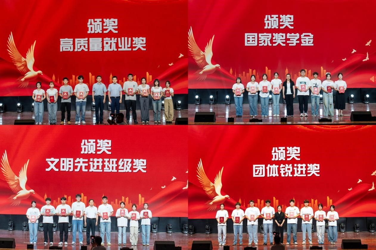 文艺展演与荣誉表彰的交织,则让奋斗有了可视化的注脚。活力开场舞《青春跃动》的鼓点中,“高质量就业奖”得主杨晶晶等人的荣誉背后,是汗水与笑容的同频共振;校园歌手唱响《不说再见》时,“考研卓越成就奖”的获得者轻抚证书;全英文话剧《逃离大英博物馆》传递了文化深情。街舞《破竹》与“十大专项奖”、舞蹈《我爱你中国》与“弦歌艺蕴奖”的搭配,让个性的光芒熠熠生辉;“文明先进班级奖”的集体合影、“优秀宿舍奖”的颁发,更体现了荣誉不仅属于个人,更是群体记忆的勋章。