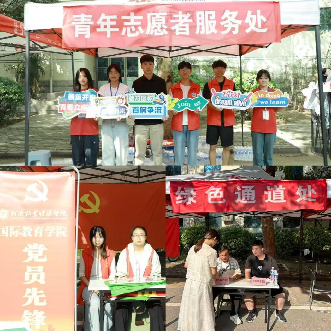 在校园里还穿梭着“红色身影”, 学生党员、团学会学生干部、青年志愿者们分工明确,他们在校门口主动接过新生手中的行李箱,协助新生办理报到手续,耐心指导他们填写资料,陪同他们来到宿舍并介绍校园生活设施。志愿者们始终面带微笑主动上前,用行动将“有人迎、有人帮”的承诺落到每一个细节里。