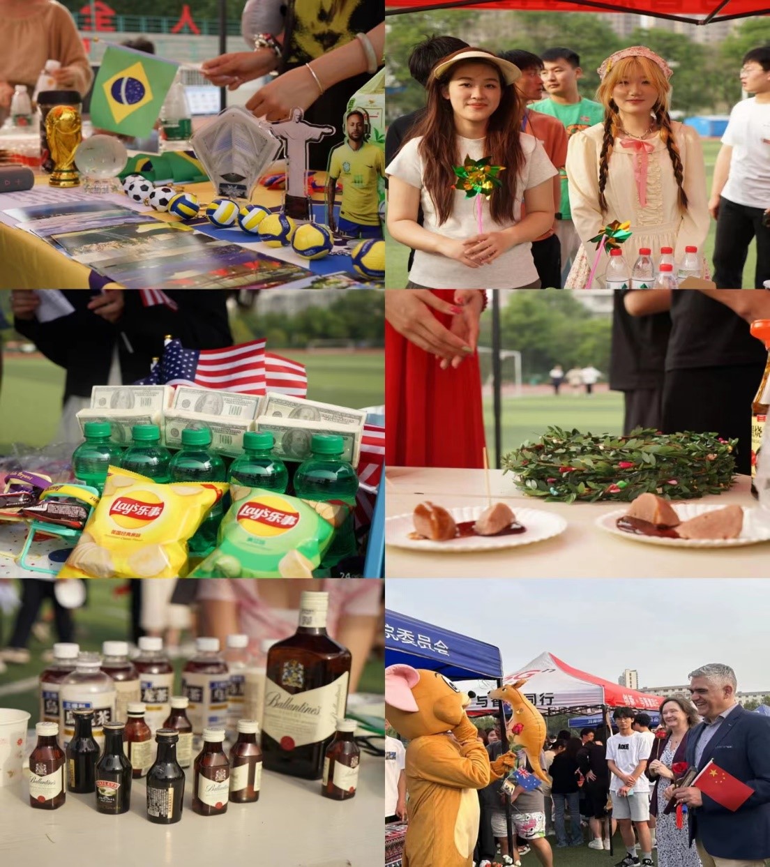 开幕式结束后,师生们共同参观了国际文化风情展。巴西展位的小伙伴们做起了香飘四溢的烤肉串;挪威展位的投壶游戏使师生摩拳擦掌;泰国的民族舞蹈吸引了无数师生驻足观看;法国展位旁,帅气的小伙子弹起了吉他;瑞典展位颜值爆表的帅哥频频被邀合影;意大利展位上,披萨应有尽有;韩国展位旁,漂亮的小姐姐跳起了激情四射的K-POP;色彩明快的书画作品、一串串中国结、写有古诗的折扇、造型各异的剪纸,见证了中华文化的博大精深;爱尔兰展位旁,师生们佩戴上精美的三叶草胸针和绿色的帽子,纷纷合影留念……师生们穿梭于展位之间,品尝特色美食,体验民族风情和传统文化,足不出校门就享受到了一场国际化的视听盛宴。