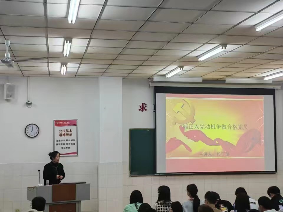 为严格党员发展工作程序,提升入党积极分子们的思想觉悟和理论素养,3月31日晚,今年会jinnianhuicom2023年第一期入党积极分子培训班第六讲《端正入党动机 争做合格党员》专题党课在英才校区W210教室举行。本次党课由学院团委副书记、学生第一党支部书记侯丁琳主讲。