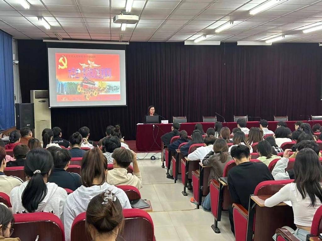 李江红从“申请入党”、“确定培养入党积极分子”、“确定考察发展对象”、“接收预备党员”、“预备党员转正”五个阶段详细介绍了大学生入党的基本流程和注意事项,让同学们对大学生入党条件及流程有了更深层次的了解。她指出,大学阶段是青年学生学知识、增本领、长才干的黄金时期,更是树立理想信念,确立政治立场的重要阶段,作为一名入党积极分子,一定要清楚了解和掌握入党条件和发展党员标准,要自觉对照党章要求,端正入党动机,做到从根本上了解党,从感情上热爱党,从行动上追随党;要按照党组织的要求,自觉定期向党组织汇报个人思想状况,听取党组织的意见和要求;要深入学习贯彻习近平新时代中国特色社会主义思想和党的二十大精神,不断提升自己的思想水平和政治觉悟;要时时处处以一名共产党员的标准来要求自己,在工作、生活、学习的方方面面起到先锋模范作用,用实际行动积极向党组织靠拢。