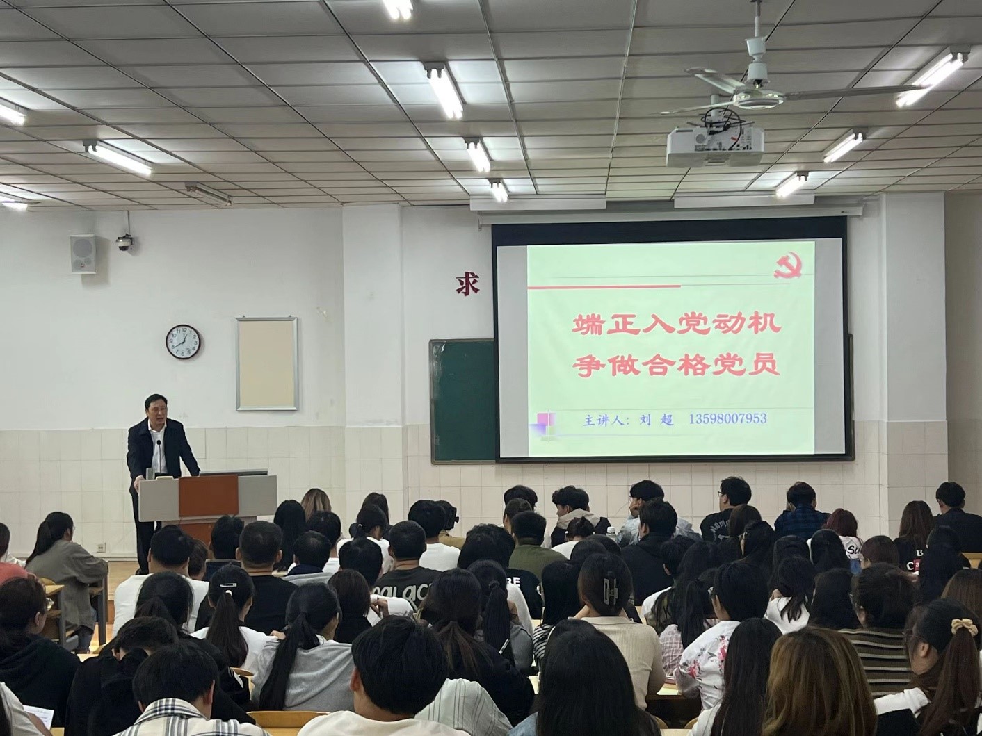 刘超从“什么是正确的入党动机”、“为什么要端正入党动机”、“如何在实践中不断端正入党动机”、“如何积极创造条件,以实际行动争取早日入党”四个方面进行了详细讲解。他指出,端正入党动机是对申请入党同志的最基本要求和保证新发展党员质量的一个重要环节和措施;树立正确的入党动机,不是一朝一夕的事,需要经过长时间的努力和锤炼;只有端正入党动机,才能经受住党组织的考验,才能在实践中不断纯洁入党动机,做到思想上真正入党。他勉励同学们要不断加强政治理论学习,坚定理想信念,在实践锻炼中不断端正入党动机,以实际行动争取早日入党。