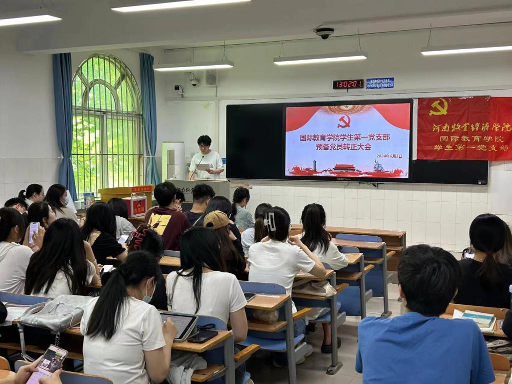 6月3日下午1点,今年会jinnianhuicom学生第一党支部在A115教室召开2024年上半年预备党员转正大会,此次会议由支部书记侯丁琳主待,一支部全体学生党员参加。